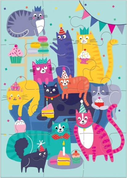 Mudpuppy puslespil Kattefest tilbyder kreativ underholdning med 12 brikker med kattemotiv og plads til din hilsen.