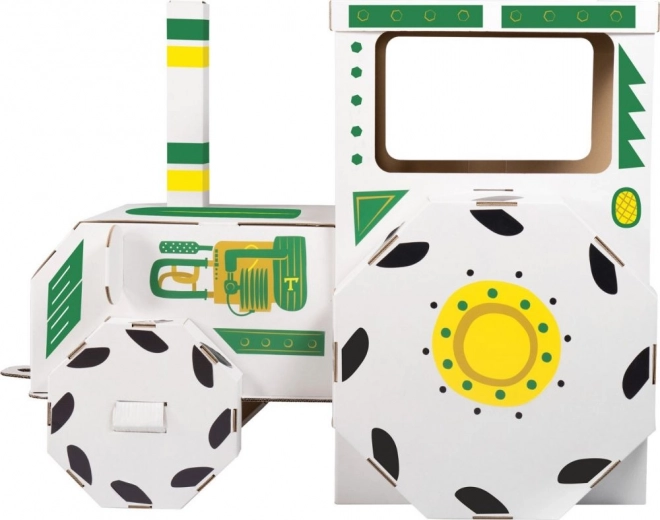 Denne paptraktor til børn stimulerer fantasi, fælles leg og finmotorik. Den lette men robuste papkonstruktion er sikker til indendørs brug og klar til hurtig samling. Den neutrale hvide overflade med grønne-gule detaljer virker legende og passer nemt ind på ethvert børneværelse.