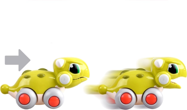 Skub og kør! Dinosaurussen kører ved hjælp af friktionsdrev – ideel til intuitiv leg for børn fra 18 måneder.
