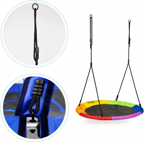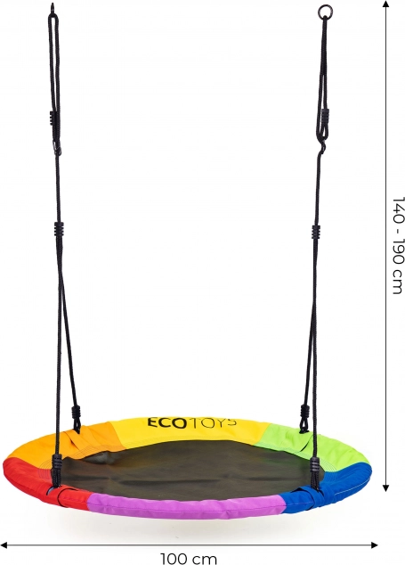 Havegyngen “storkerede” giver børn langvarig udendørs leg! Ideel løsning til hjemmehaven eller legepladsen.Takket være højdeindstilling af reblængden kan gyngen tilpasses selv de mindste brugeres højde, hvilket gør den nemmere at bruge.