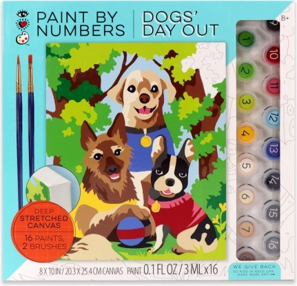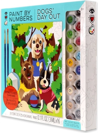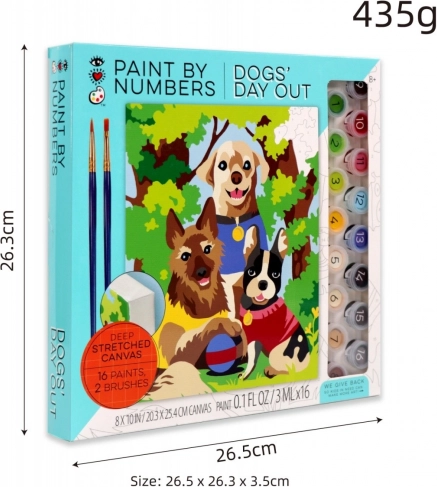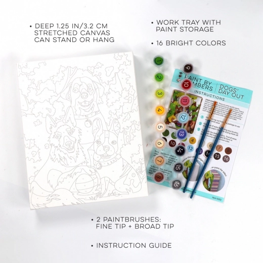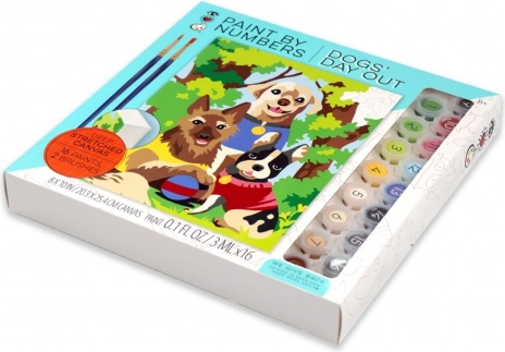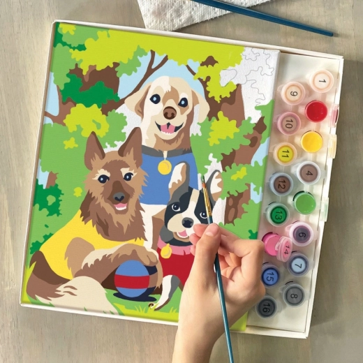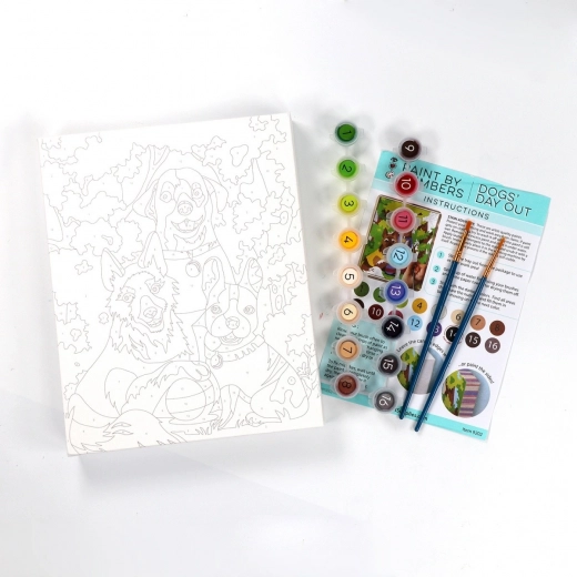 Dette sæt til maling efter tal hjælper dig trin for trin med at skabe en farverig scene med tre hunde på tur. De nummererede felter på lærredet svarer til numrene på farvekopperne, så du ved præcis, hvor hver nuance hører til. Malingen er afslappende, sjov og velegnet til både begyndere og børn.