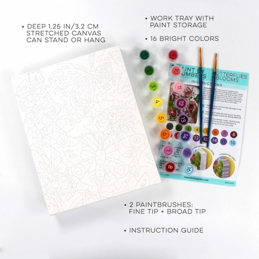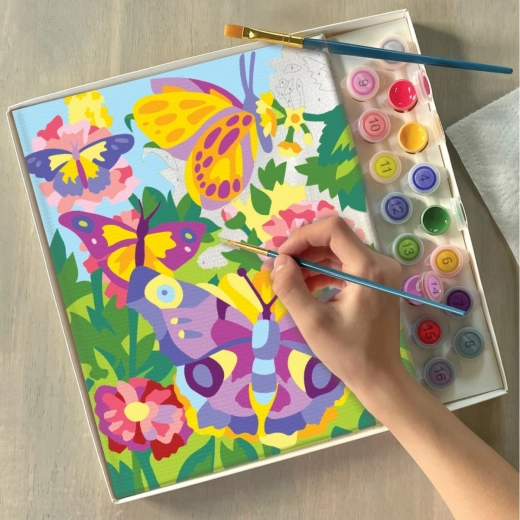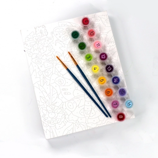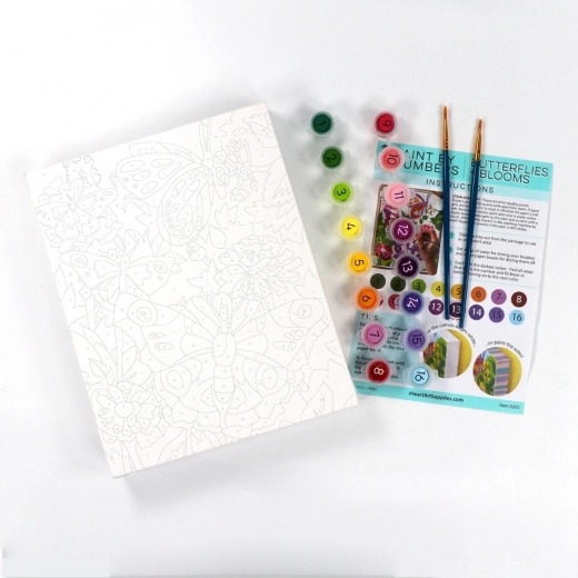 Opdag et afslappende sæt til maling efter tal med motiv af sommerfugle, ideelt til både begyndere og øvede. Påfør blot den rigtige farve på de nummererede felter på lærredet, og skab trin for trin dit eget kunstværk uden tidligere erfaring.