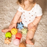 Hver bold giver en unik oplevelse takket være forskellige overflademønstre, der stimulerer dit barns taktile opfattelse.