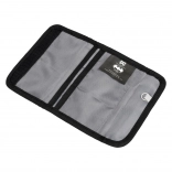 Fremstillet i tekstilmateriale med rum til organisering af kort og kontanter, inklusive krog til fastgørelse af ekstra genstande.