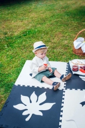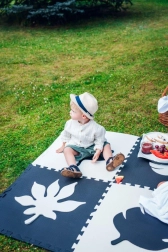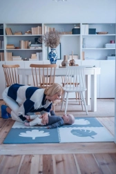 De store rumlige blade, som er en del af puslespillet, er en fantastisk legeting for barnet. Når barnet vokser fra underlaget, kan du med dobbeltsidet klæbebånd bruge det som et dekorativt element.