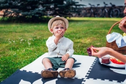 Skumunderlaget MoMi FELI skaber et sikkert og behageligt legeområde for børn. Det er ideelt til både indendørs og udendørs brug.