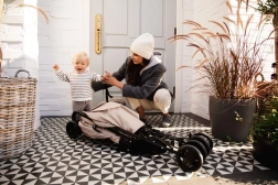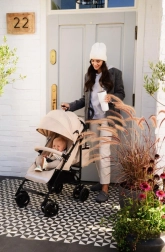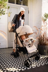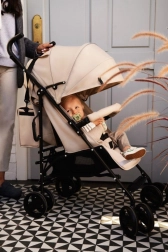 MoMi Akira er det ideelle valg for forældre, der ønsker en praktisk, kompakt og sikker klapvogn til byen og på farten. Takket være den lette ramme og nem foldning lægger du den hurtigt i bilen og bærer den komfortabelt med det integrerede håndtag. Kalechen med kiggevindue lader dig holde øje med barnet uden at vende vognen.