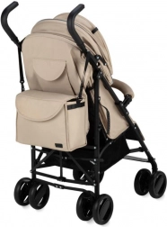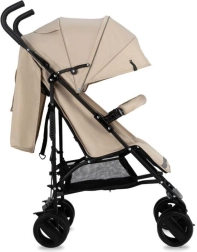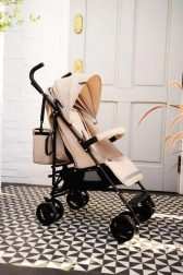Den lette og kompakte paraplyklapvogn MoMi Akira i elegant beige tilbyder hurtig foldning med én hånd, bærehåndtag og holdbare EVA-hjul, der ikke kan punktere. Inkluderer rigt tilbehør – taske til forældre, regnslag og myggenet – for komfortabel rejse i al slags vejr.