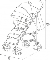 Klapvognen er udstyret med manøvredygtige EVA-skumhjul, som er punkterfri, låsning af forhjul og reflekselementer for bedre synlighed. Justerbart ryglæn og fodstøtte sikrer komfort fra 6 måneder og op til 15 kg. Den praktiske mulighed for at fjerne bøjlen i den ene side gør det nemt at sætte barnet i.