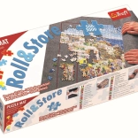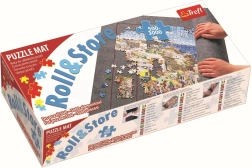 Nyd at lægge puslespil med den praktiske rullelige puslespilsmåtte fra TREFL. Filtoverfladen forhindrer, at brikker glider, og giver god plads til sortering og til store motiver. Når du er færdig, lægger du røret på måtten, ruller sammen og sikrer med burrebånd – det igangværende puslespil forbliver urørt til næste gang.