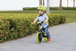 Brede, gribende 10" TPE-dæk og buet styr med behagelige håndtag giver sikker kontrol på forskellige underlag. Sadelens totrins-justering vokser med barnet og giver en ideel siddestilling fra de første skridt til sikker kørsel.