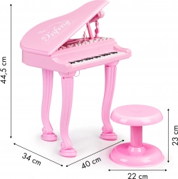 Nyd uforglemmelig sjov med dette pink klaver, der bringer musikalsk atmosfære ind i dit hjem. Klaveret er designet til at lade børn komponere deres egne sange og giver et realistisk udseende som et ægte instrument. Sættet inkluderer en skammel, der sikrer komfort under spilletid for din lille kunstner.