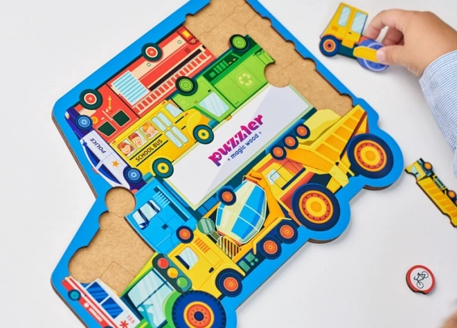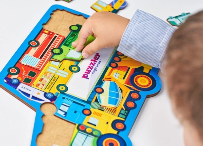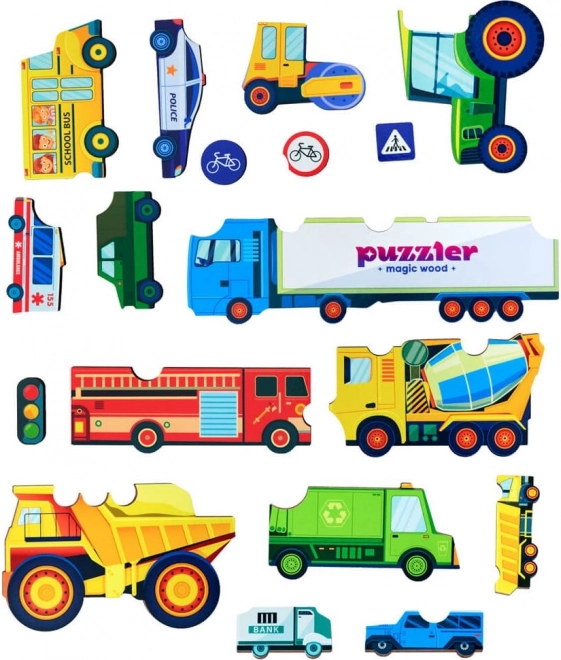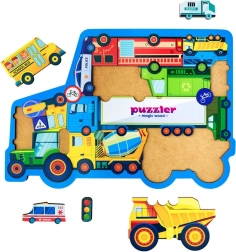Det samlede puslespil måler ca. 29 × 20,5 cm – perfekt til børnehænder og hjemmets legebord. Puslespillet er et godt valg for børn, der interesserer sig for alle slags biler, og det støtter samtidig hånd-øje-koordination og kognitiv udvikling.