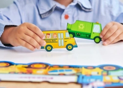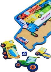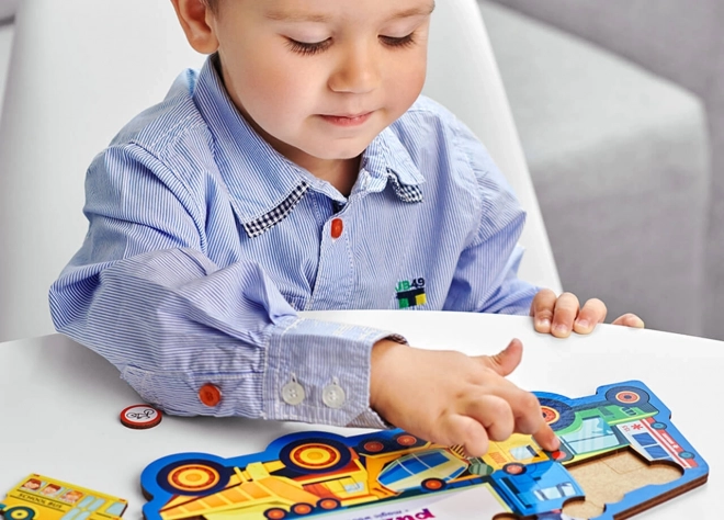 Hver brik viser et andet transportmiddel eller et skilt, så børn nemt tilegner sig nye begreber og udvider deres ordforråd.
