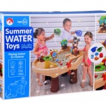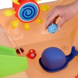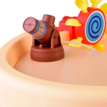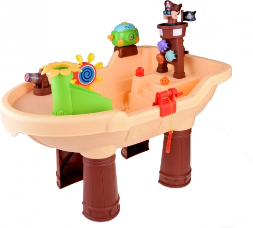 Dette pirat-vandbord er et ideelt centrum for leg i det fri. Børn kan nyde vandeksperimenter, lave regnbuebobler, skyde med vandkanonen og se, hvordan vandet sætter tandhjul og søde dyr i bevægelse. Bordet stimulerer kreativitet, nysgerrighed og hånd–øje-koordination.