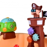 Oplev eventyr i haven med dette pirat-vandbord – et kreativt legetøj til børn, der kombinerer sandkasse, vandleg og en boblemaskine. Takket være vandkanonen, roterende hjul og snurrende dyr udvikles finmotorik, sanser og fantasi. Den holdbare plastkonstruktion, sikre afrundede kanter og mulighed for leg ude og inde garanterer masser af sjov året rundt.