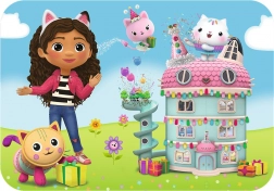 Træpuslespil med temaet Glade Gabby og hendes venner bringer børnene ind i eventyret Kattens hus Gabi. Disse puslespil har: