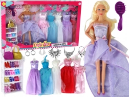 Dukken i glitrende lilla kjole med blå øjne og langt, let friserbart hår ligner en ægte prinsesse. Med fem forskellige kjoler med tyl og glitrende detaljer kan børn nyde styling, udklædning og finde på nye historier hver dag.