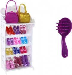 Med følger et hvidt garderobeskab med 12 par højhælede sko, to håndtasker, smykker, en kam og en hårklemme – alt, hvad der skal til for kreativ leg og udvikling af fantasien. Legetøjet er CE-certificeret, opfylder standarden EN 71 og er egnet til børn fra 3 år.