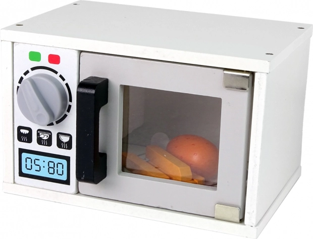 En stilfuld træmikroovn i hvid er det perfekte supplement til ethvert legekøkken. Understøtter rolleleg, har magnetiske låger, en klikbar drejeknap og leveres med rigt tilbehør. Fremstillet af kvalitets træ og sikkert lakeret efter CE- og EN 71-standarderne, egnet til børn fra 3 år.