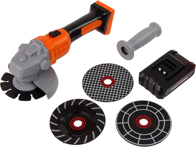 Dette børneværktøjssæt giver en realistisk oplevelse af arbejde i værkstedet – sikkert og legende. Den lette plastsliber med roterende skive, der aktiveres ved at skubbe kontakten på håndtaget, begejstrer enhver lille bygger. Der medfølger 3 udskiftelige skiver, beskyttelsesbriller, maske og handsker, som lærer grundlæggende sikkerhed.