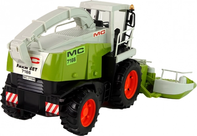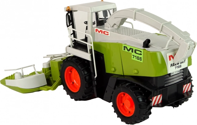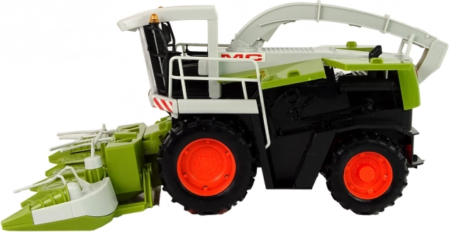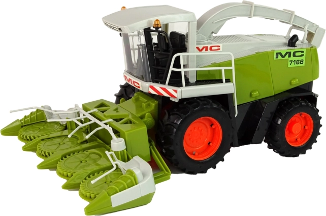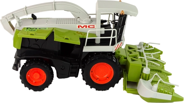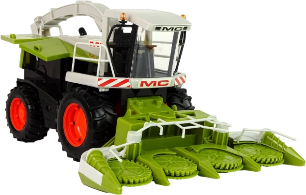 Stor grøn mejetærsker tilbyder et realistisk udseende med bevægelige dele som rattet og skæresystemet, der simulerer det virkelige arbejde på marken. Åbne elementer gør det muligt at lade som om der er reparationer og vedligeholdelse af køretøjet, mens den rummelige indre giver mulighed for opbevaring af småting eller legetøj.