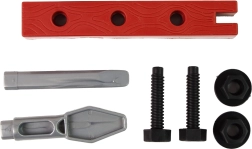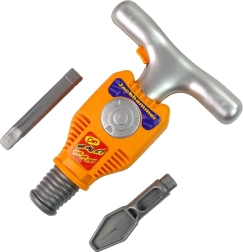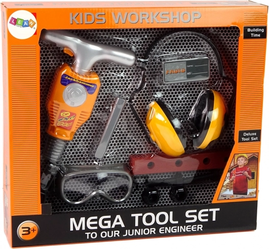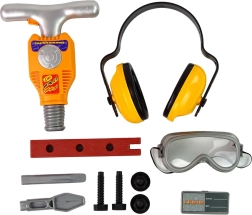 Hele sættet er pakket i en æske med gennemsigtigt vindue, som fanger barnets opmærksomhed. Sættet indeholder skruer, der kan skrues i ved hjælp af hammeren og den passende bit. En yderligere fordel ved dette sæt er, at hammeren, når batterier indsættes og den orange knap på håndtaget aktiveres, begynder at virke på sin karakteristiske måde. Derfor har barnet også mulighed for at tage hovedtelefoner og beskyttelsesbriller på, hvilket giver endnu mere sjov, men også sikkerhed ved brug af mejselhammeren. Alle dele er lavet af plast og er sikre for børn.