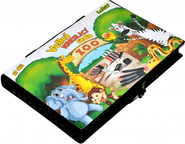 Opdag et komplet kreativt sæt i en praktisk kuffert med ZOO-motiv, som udvikler fantasien, finmotorikken og glæden ved at skabe. Takket være den overskuelige indretning har barnet alt ved hånden og kan til enhver tid begynde at tegne, male og lime.