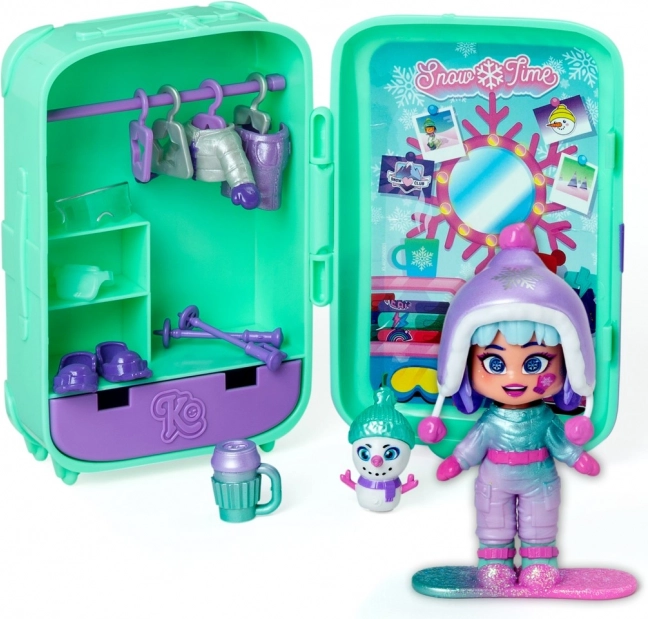 Kufferten fungerer som mini-garderobe og opbevaringsplads, så du har alle outfits, kæledyr og accessories samlet. To vinterkombinationer, board og tematiske accessories stimulerer fantasi og finmotorik.