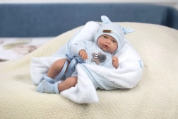 Den søde babydukke Hugo er ideel til børn, der ønsker at lege og passe deres eget 'baby'. Dukken udgiver en autentisk lyd af en grinende baby ved at trykke på brystet. Den er udstyret med led, der tillader bevægelse af arme og ben, og den kan også sidde.