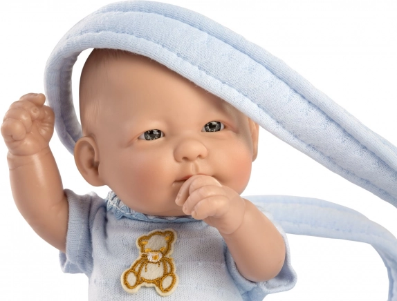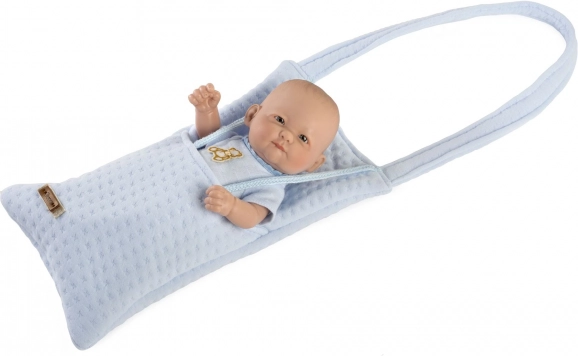 Denne realistiske babydukke måler 25 cm og er fremstillet med fokus på hver eneste detalje, inklusive søde hudfolder og køn. Arme og ben er fastgjort med led, hvilket gør det muligt for dukken at indtage forskellige positioner og endda sidde. Takket være den fulde vinylkrop er den også egnet til badning.