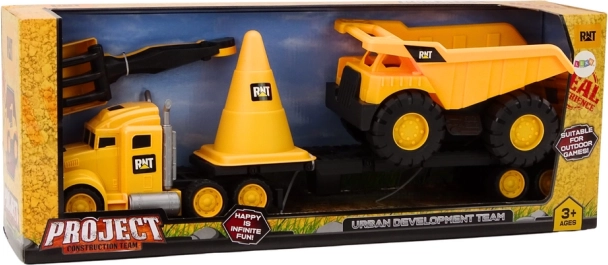 Dette realistiske byggesæt vil glæde ethvert barn, der elsker byggepladsuniverser. Den gule trækker med påhængsvogn transporterer nemt tipvognen, den store trafik-kegle afmærker byggepladsen, og skovl samt rive giver timevis af leg i sandkassen og i haven. Legetøjet er lavet af kvalitets- og holdbar plast, som er let at rengøre.