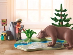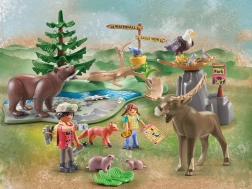 • Rigt indhold: 2 menneskefigurer (mand ca. 7,5 cm, pige ca. 5,25 cm), grizzly, hvidhovedet havørn, elg, ræv, 2 murmeldyr, 3 laks, fugl, base med flod, nåletræ, retningsskilt, kamera, kikkert.