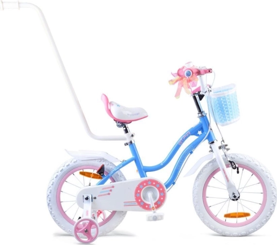 Den stilfulde børnecykel RoyalBaby Star Girl med 14″ hjul er ideel til de første ture. Den tilbyder stabilitet takket være støttehjul, sikre håndbremser, fuldt kædedæksel og behageligt sæde med håndtag. Med forreste kurv, ringeklokke og farverige styrebånd – alt for en sjov og sikker indlæring af cykling.