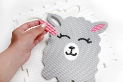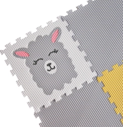 Denne skumpuslespilsmåtte i hvid med et venligt lama-motiv bløder ethvert børnehjørne op. De enkelte dele passer nemt sammen, så du på ingen tid skaber en sikker og blød legeflade, der beskytter mod kulde og små fald.