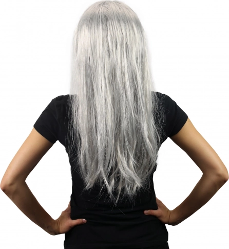 Forvandl dig på et øjeblik til en mystisk heks. Denne lange grå paryk giver dit kostume et autentisk look, uanset om det er til halloween, temafest eller cosplay. Takket være de syntetiske fibre virker den naturlig og holder formen godt.
