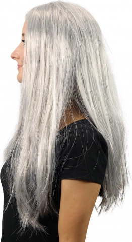 Stilfuld karnevalsparyk med langt gråt hår for et perfekt hekse-look. Ideel som tilbehør til kostume, let at tage på og virker realistisk. Velegnet til halloween, fester og cosplay. Anbefales fra 14 år.