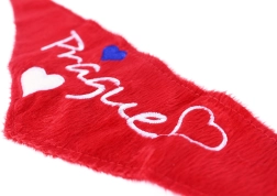 Giv dine plysdyr et strejf af stil og Prags charme. Dette røde plystørklæde med Prague-broderi og dekorative hjerter er blødt at røre ved, let og skånsomt mod plys-overflader. Passer perfekt til standard plysdyr omkring 30 cm.