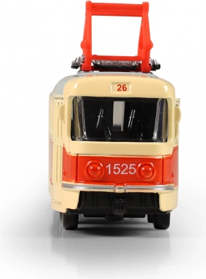 Den troværdige udførelse med vinduer, hjul og funktionsdygtig pantograf understreger den autentiske bysporvognsstil.