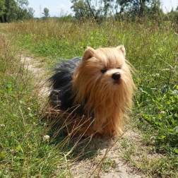 Lang, blød pels, skinnende øjne og naturtro farver skaber et overbevisende realistisk udseende af yorkshire terrieren.