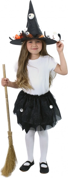 Pakken indeholder også en hat, som fuldender kostumets magiske look, tilføjer leg og er ideel til enhver lille heks.