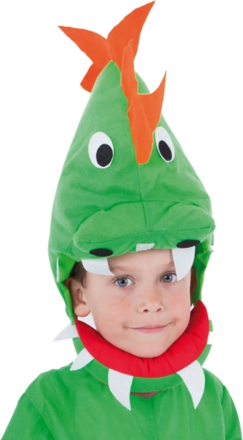 Den aftagelige hætte med øjne og kam giver kostumet ekstra udtryk og gør rollelegen som dinosaur endnu sjovere.
