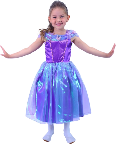 Dette lilla prinsessekostume forvandler enhver pige til festens stjerne. Fine, glitrende materialer, blomster- og sommerfugledetaljer samt en let lagdelt nederdel understreger det eventyrlige look, som er behageligt at have på hele dagen.