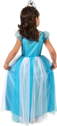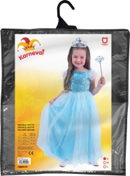 Prinsessekjole i elegant blå med hvid tyl imponerer ved første øjekast. Overdelen er pyntet med blå pailletter, der glitrer smukt ved enhver bevægelse, mens det lette tutu-skørt giver kjolen eventyrlig fylde. Ideel til karneval, maskebal, fødselsdage og daglig udklædningsleg.