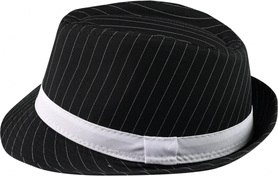 Fine hvide striber på sort baggrund giver hatten et tidløst look, som nemt kan kombineres med både jakkesæt og smart casual.