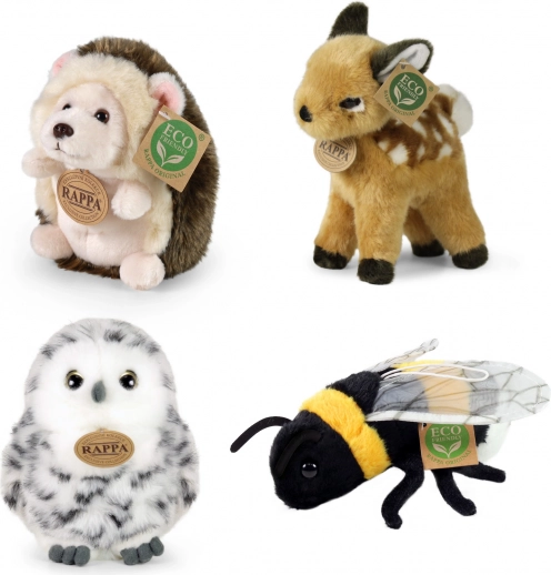 Det stilfulde RAPPA ECO‑FRIENDLY butiksdisplay tilbyder en farverig kollektion af realistisk udformede skovdyr. Hver plys er fyldt med fibre fra genanvendte PET, hvilket gør den blød, luftig og skånsom mod naturen. Ideel som gaver til børn og som fristende impulsvare ved kassen.