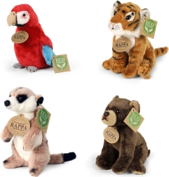 Det stilfulde salgsdisplay præsenterer en eksklusiv kollektion af RAPPA‑plysdyr med fokus på bæredygtig produktion. Fyldet i hvert legetøj er lavet af genanvendte PET‑flasker – materialet er helt sikkert, blødt at røre ved og fuldt certificeret selv til de mindste børn.