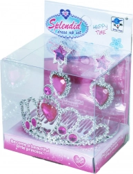 Sættet indeholder en krone og øreringe i matchende design, så resultatet altid bliver helt prinsesseagtigt.