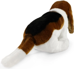 Lange ører, naturtro farver og blød plys skaber et autentisk basset-udtryk, som børn vil elske.
