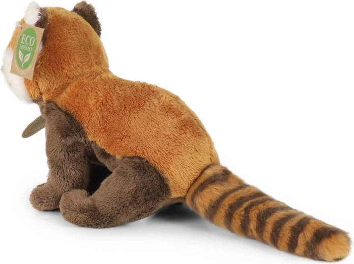 Denne røde plys-panda udmærker sig ved blød, behagelig pels, den karakteristiske stribede hale og markante hvide ansigtstræk. Takket være den skånsomme ECO-FRIENDLY fyldning af genanvendte PET-flasker er den et sikkert, let og bæredygtigt valg til daglig leg og som pynt på børneværelset.